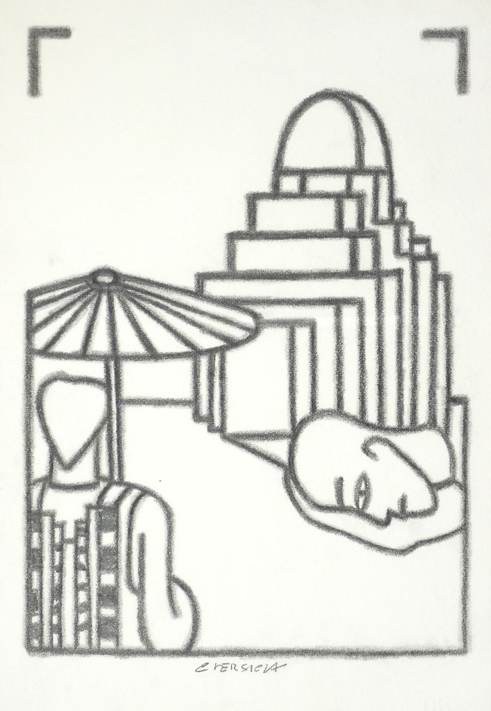 Bruno Chersicla 1937-2013 Lotto di 3 CDM "città della mente", cm. 50x35, tutti firmati.
