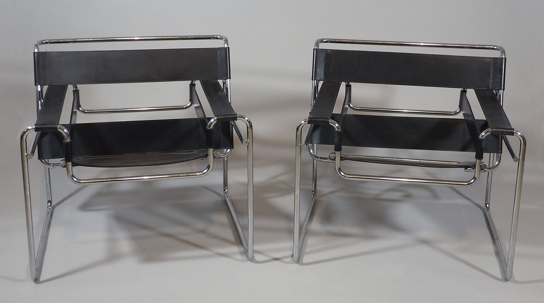 Gavina: coppia di sedie in tubolari di acciaio modello Wassily. Con etichette...