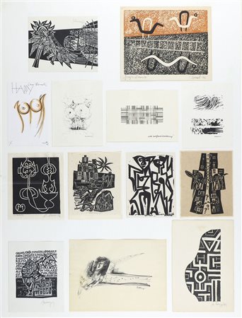 Lotto di vari biglietti d'auguri dipinti da vari artisti triestini, entro...