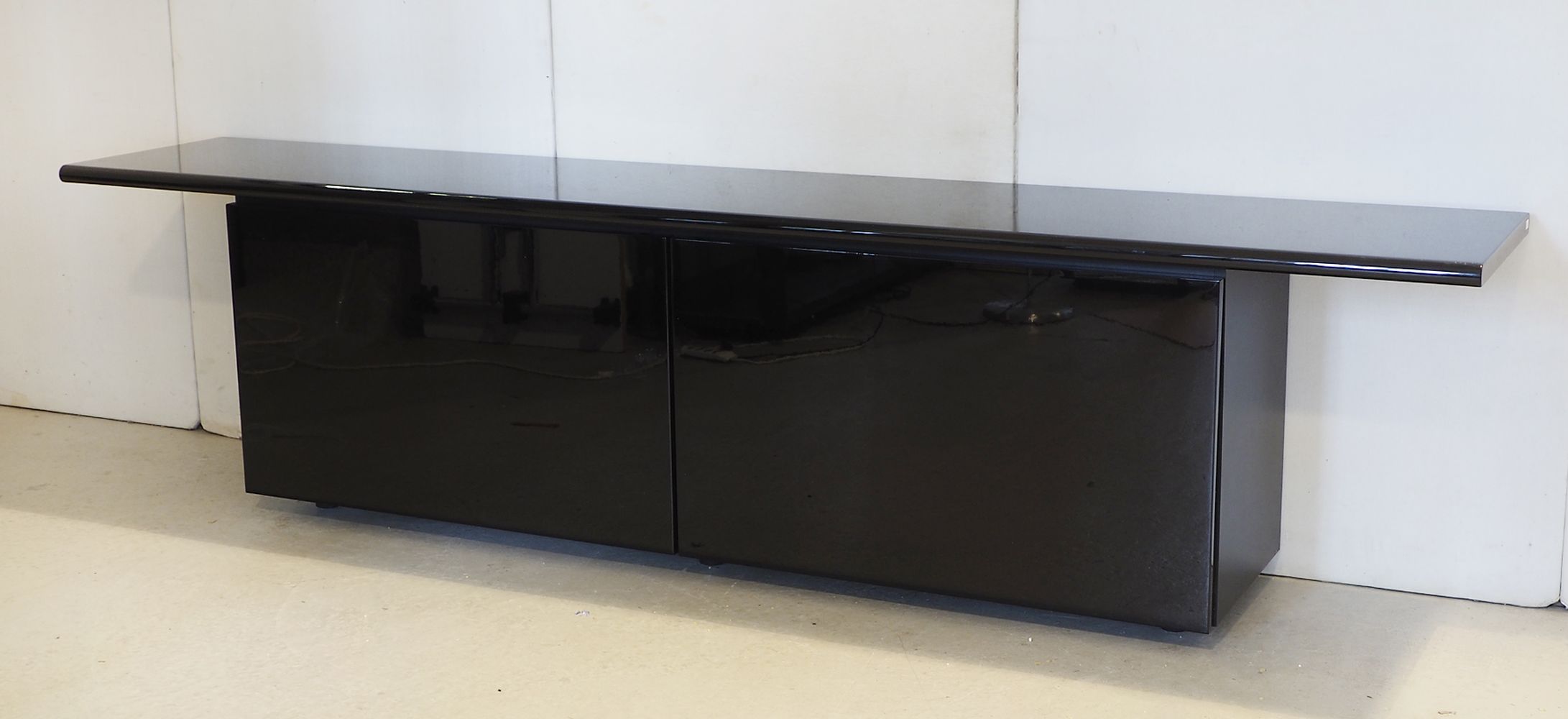Acerbis: lunga credenza bassa laccata nera a 2 ante e 3 cassetti, piano in...