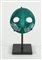 Venini: maschera in vetro verde. Con etichetta trasparente e piedistallo in ferro. H. tot cm. 24.