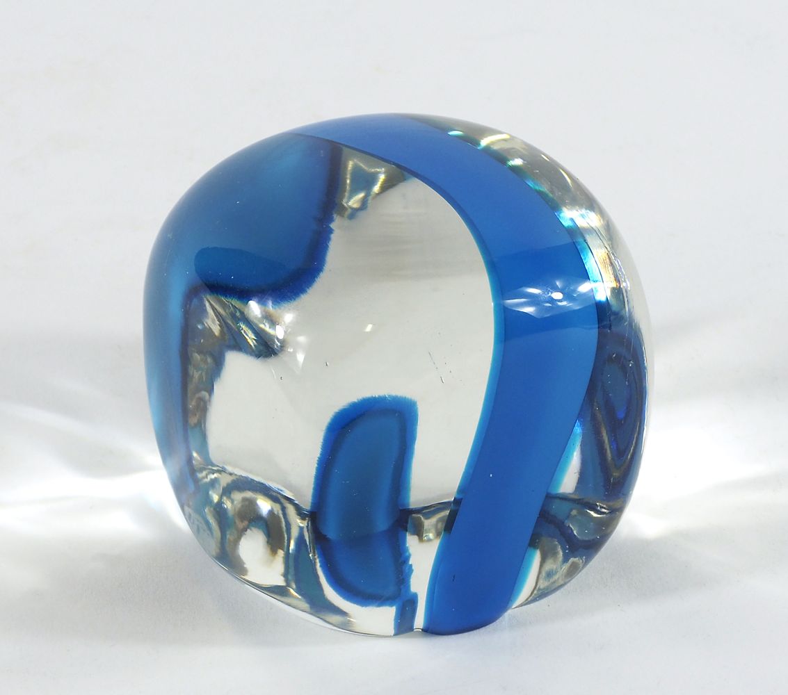 Lotto 468 | Venini: cubo in vetro trasparente con fascia azzurra, Firma incisa Venini 87....
