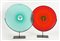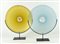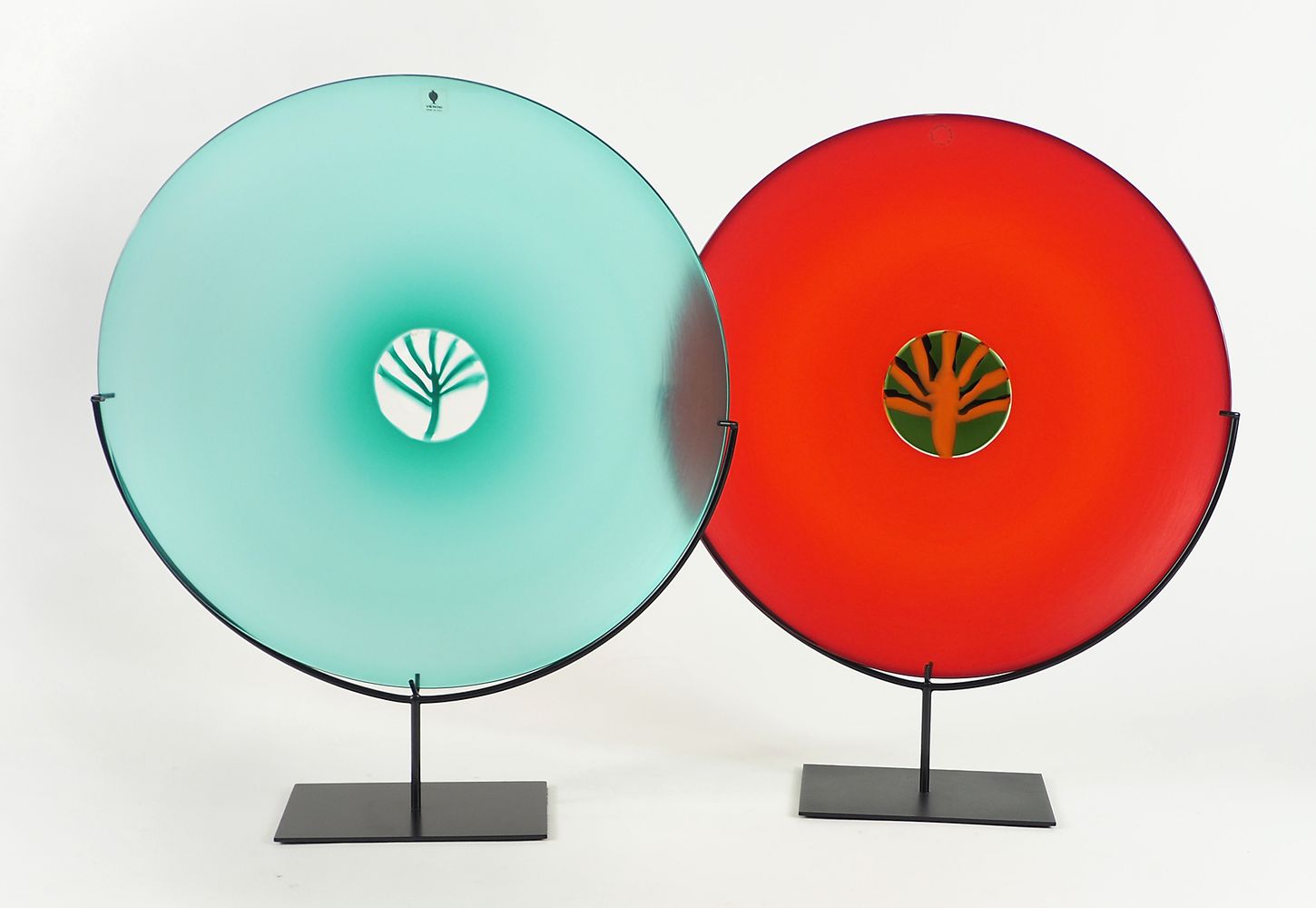 Venini: lotto di 4 piatti della serie "le 4 stagioni" in vetro con murrine centrali, disegno di L. Diaz de Santillana. Firme incise Venini Italia Laura 85. Con supporti in ferro. Diam. cm. 35. Pubbl.: "Venini" L. Massoni editore.