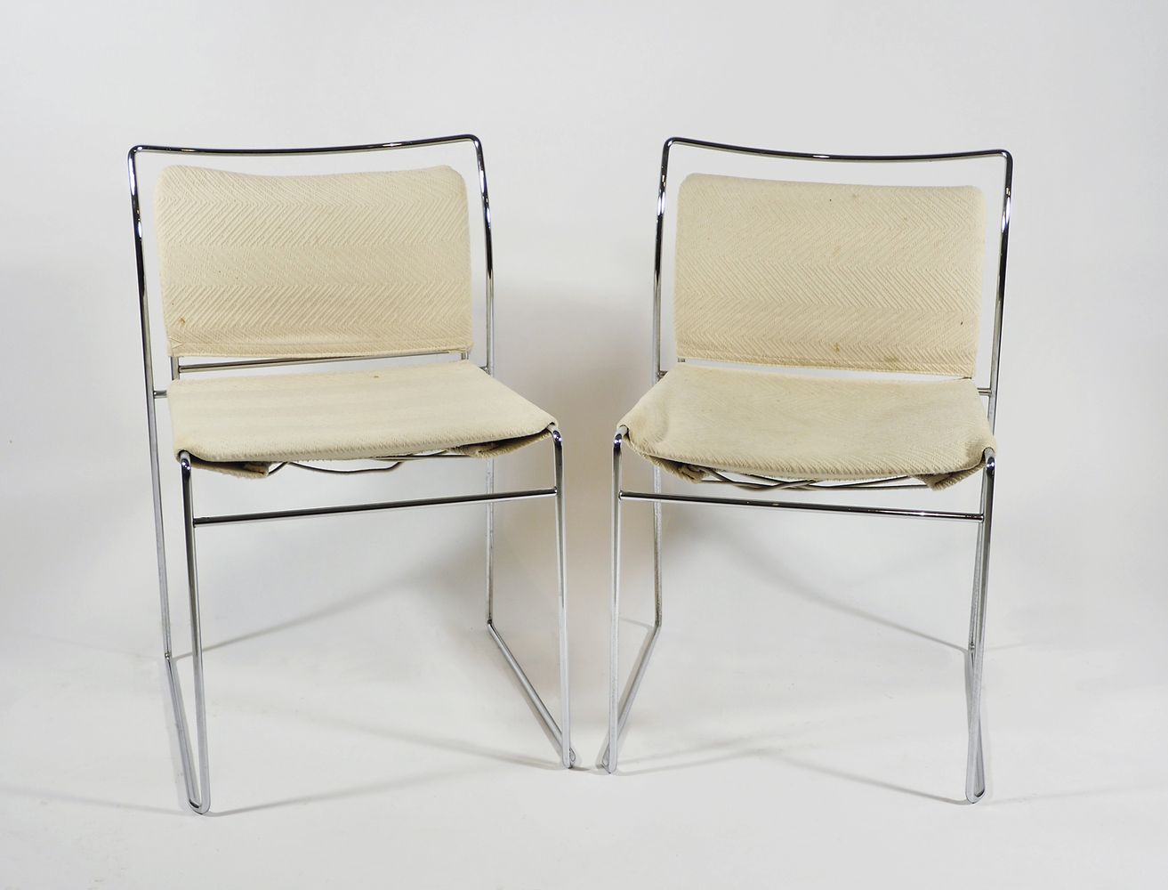 Sala da pranzo composta da tavolo in cristallo su base cromata a libro e 8 sedie modello Tulu, disegno di K. Takahama.