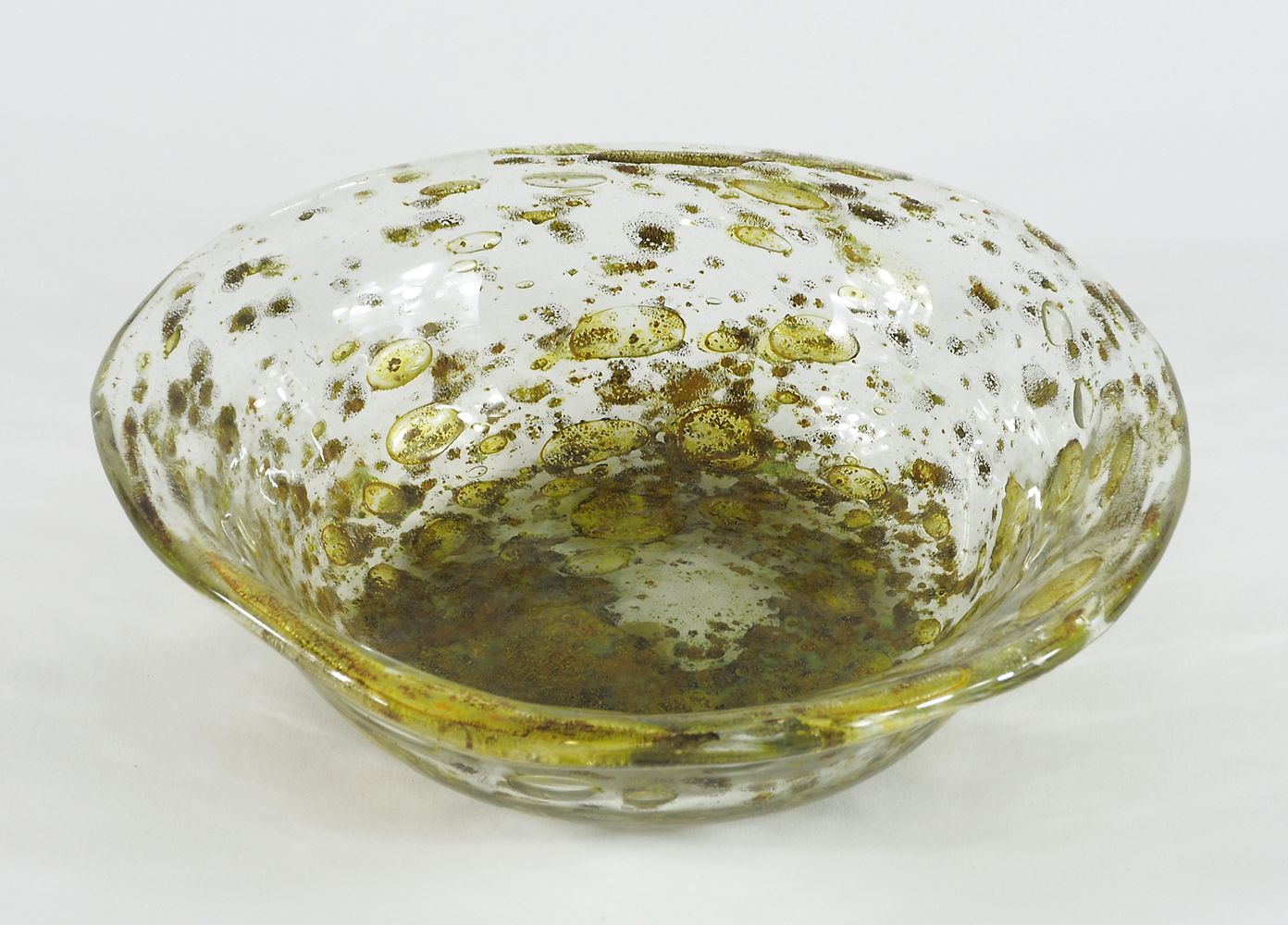 Ercole Barovier: ciotola in vetro di forma ciroclare com applicazioni a bolle...