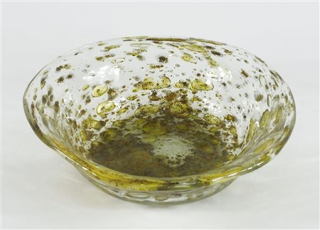Ercole Barovier: ciotola in vetro di forma ciroclare com applicazioni a bolle d'aria. Diam. cm. 22.