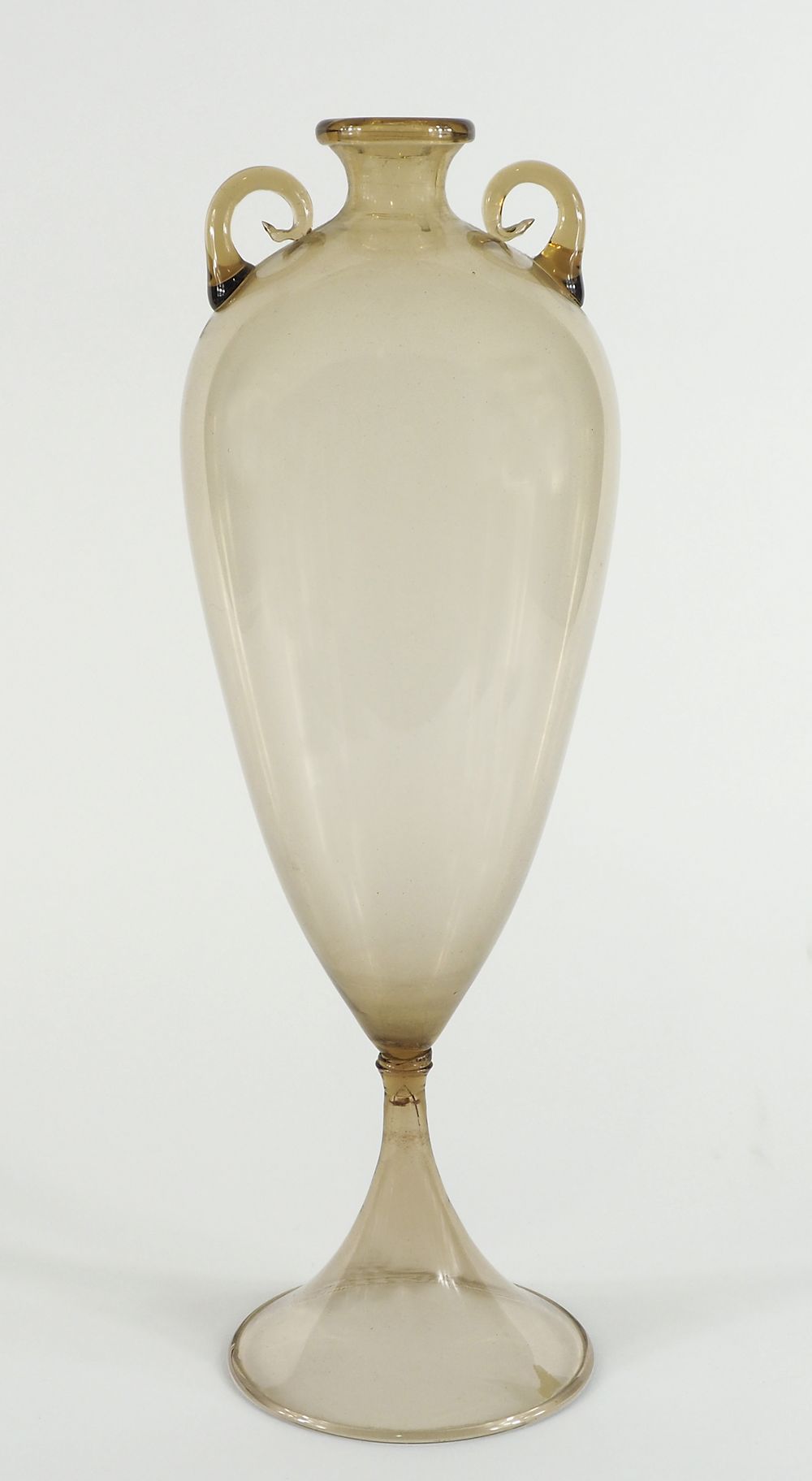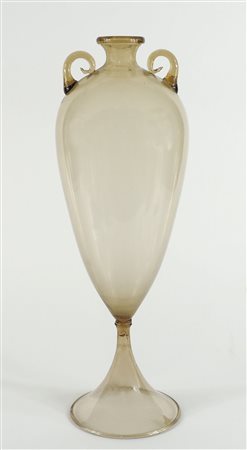 F.lli Toso: grande vaso trasparente giallino a forma di anfora. H. cm. 50.