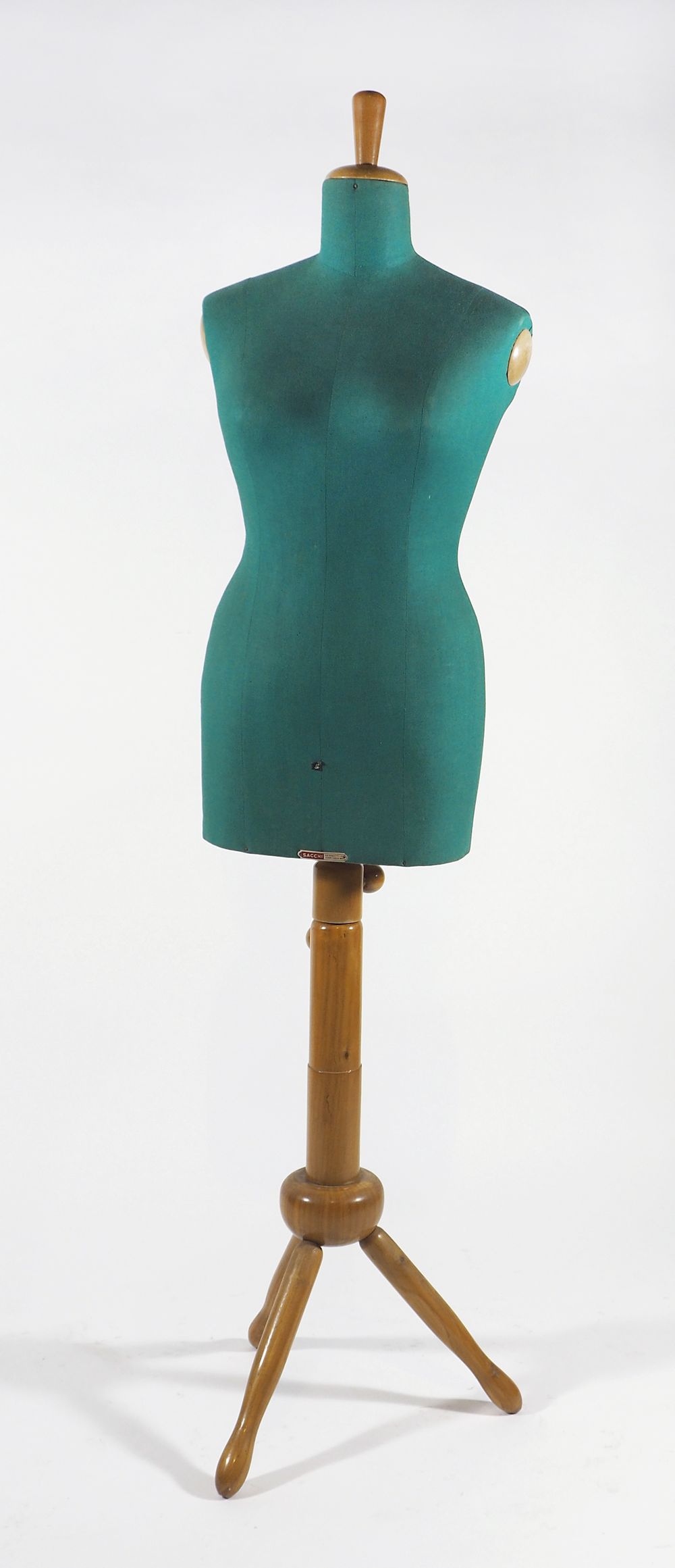 Busto sartoriale femminile in legno, taglia 48. Reca l'etichetta Sacchi Carpi. Anni '60. H. cm. 164.