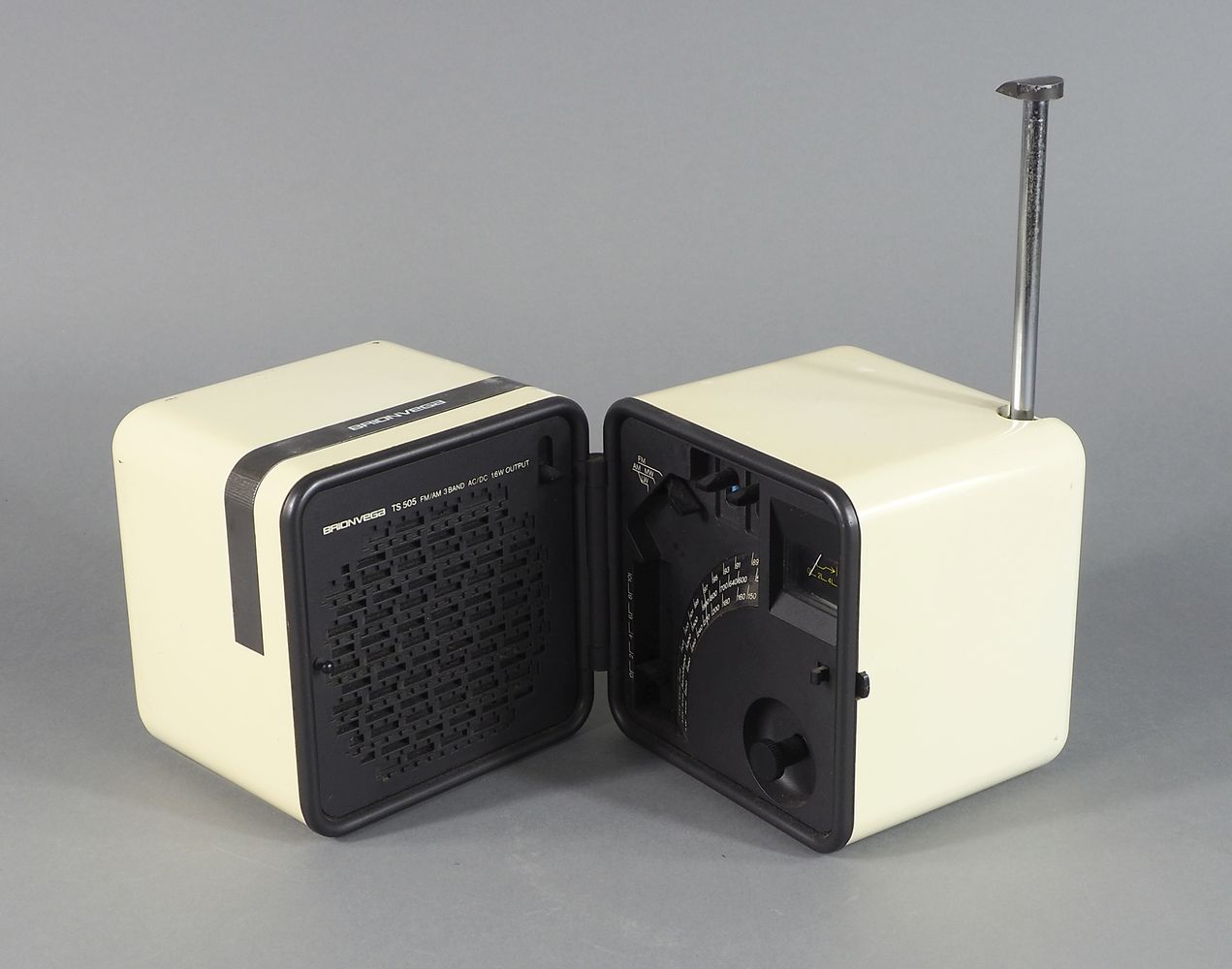 Brionvega: radiocubo di colore crema modello TS505. Disegno di Zanuso & Sapper.