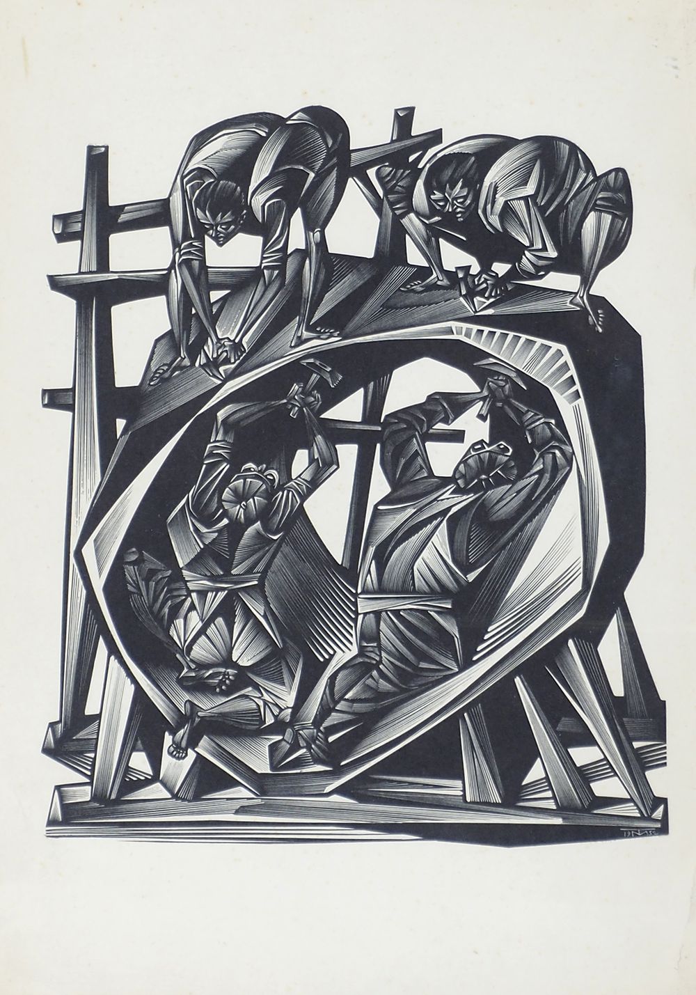 Tranquillo Marangoni Pozzuolo del Friuli 1912-Genova 1992 "Lavoratori" cm. 38x28 - incisione