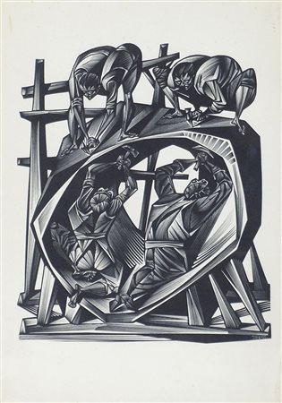Tranquillo Marangoni Pozzuolo del Friuli 1912-Genova 1992 "Lavoratori" cm....