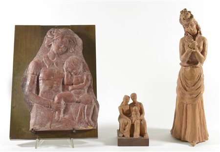 Lotto di 3 sculture in terracotta. H. max cm. 38.