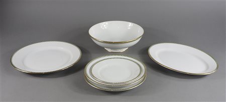Galvani: servizio di piatti per 6 persone in porcellana con bordi dorati e...