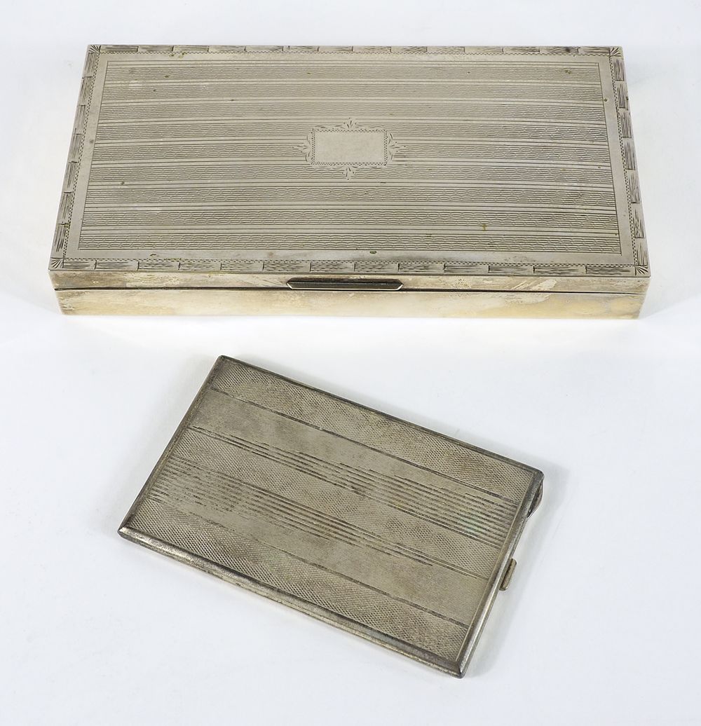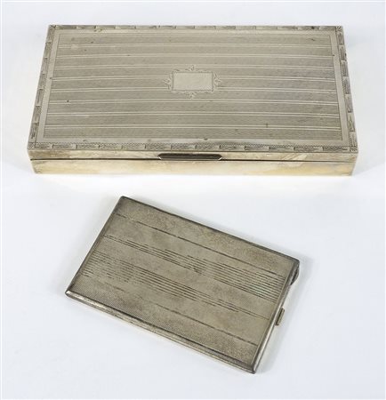 Lotto di 2 piccole scatolette in argento tra cui portasigarette.