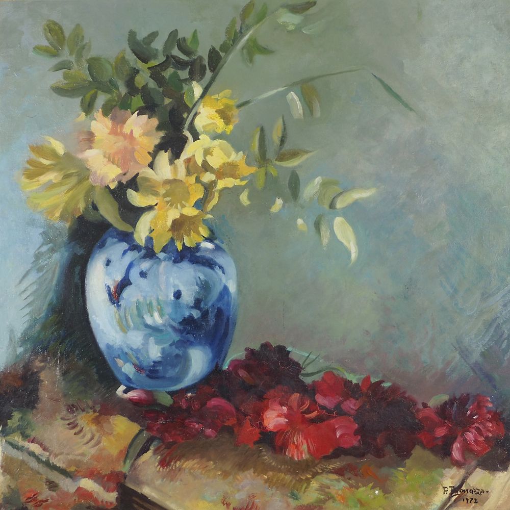 Pittore del '900 "Vaso di fiori" cm. 50x50 - olio su faesite Firmato b. a d.