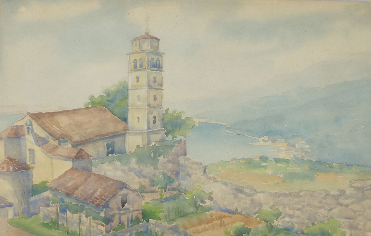 Pittore del '900 "Veduta di Castua, Fiume" cm. 25x40 - acquerello su carta