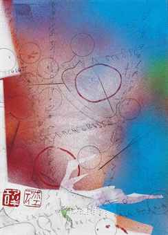Alighiero Boetti (1940-1994) Saltare nel cerchio rosso titolo, data e firma Saltare nel cerchio rosso millenovecenonovanta alighiero e boetti (al centro) pittura spray, matita e collage su carta applicata su tela cm 30x21,5 Eseguito nel 1990 Opera registrata presso l'Archivio Alighiero Boetti, Roma, n. 2899, come da autentica su fotografia in data 31 gennaio 2003 Provenance Collezione Crevola, Milano Collezione privata, Roma ivi acquisito dall'attuale proprietario