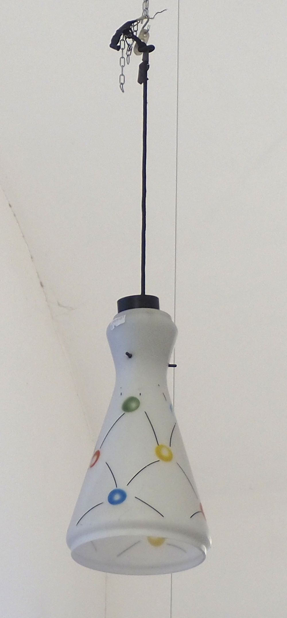 Lampadario a sospensione a campana in vetro policromo. Anni '60.
