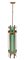 Lampadario di forma cilindrica in rame e vetro verde. Anni '60. H. cm. 98.