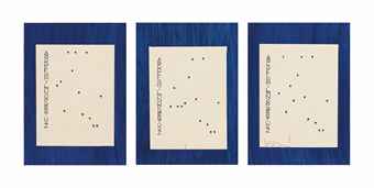 Alighiero Boetti (1940-1994) Nel giorno più lungo del 1979 firma e titolo alighiero e boetti nel giorno più lungo del 1979 (sul retro) Penna a biro blu e inchiostro su carta quadrettata, tre elementi cm 20,5x14,5 (ciascun elemento) Eseguito nel 1979 Opera registrata presso l'Archivio Alighiero Boetti, Roma, n. 1906, come da dichiarazione su fotografia in data 31 gennaio 2003 Provenance Galleria Giulia, Roma