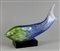 Scultura in vetro policromo raffigurante pesce, su base in vetro nero. Lung. cm. 35.