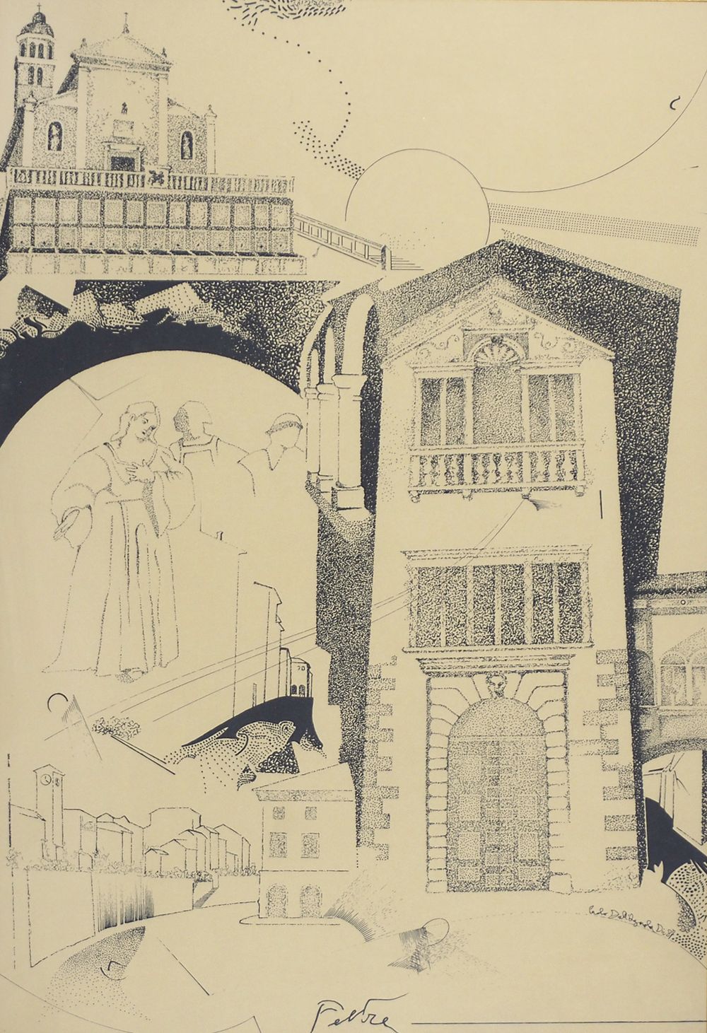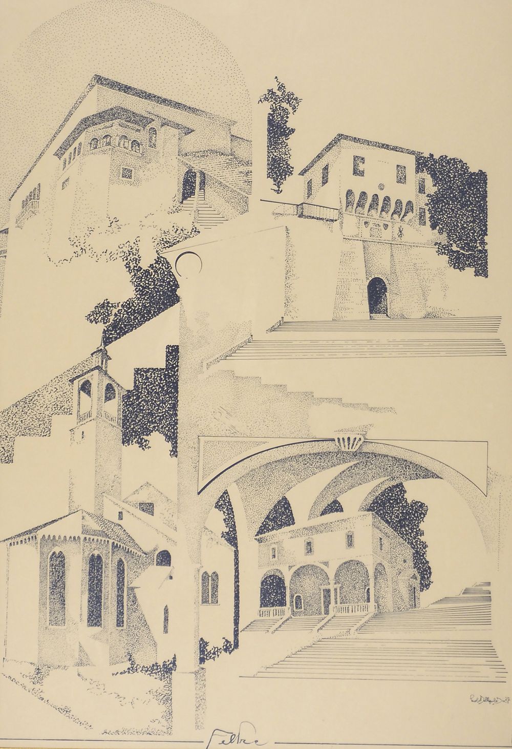 Lotto di 2 veduta di Feltre incorniciate, cm. 58x39.