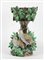 Alzata in ceramica policroma a forma di pianta con due uccelli. Porta un marchio sotto la base che raffigura due pesci. H. cm. 35.