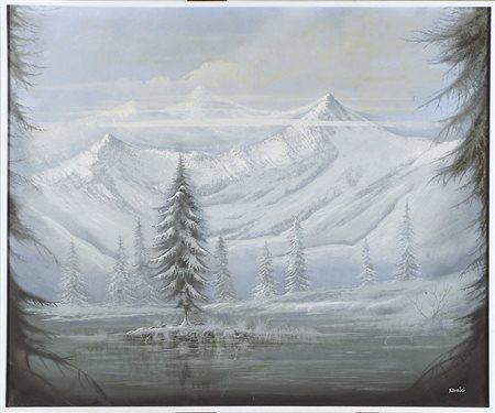 Lotto 732 | Pittore del '900 "Paesaggio innevato" cm. 50x60 - olio su tela Firmato b. a d.