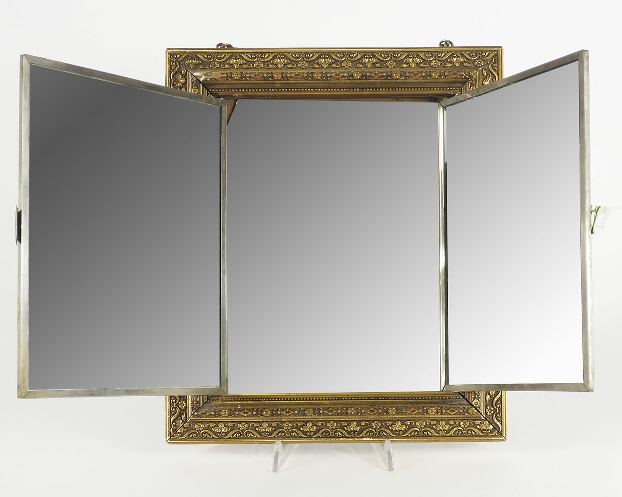 Cornice in legno dorato da parete a tre ante a specchio. cm. 36x31.