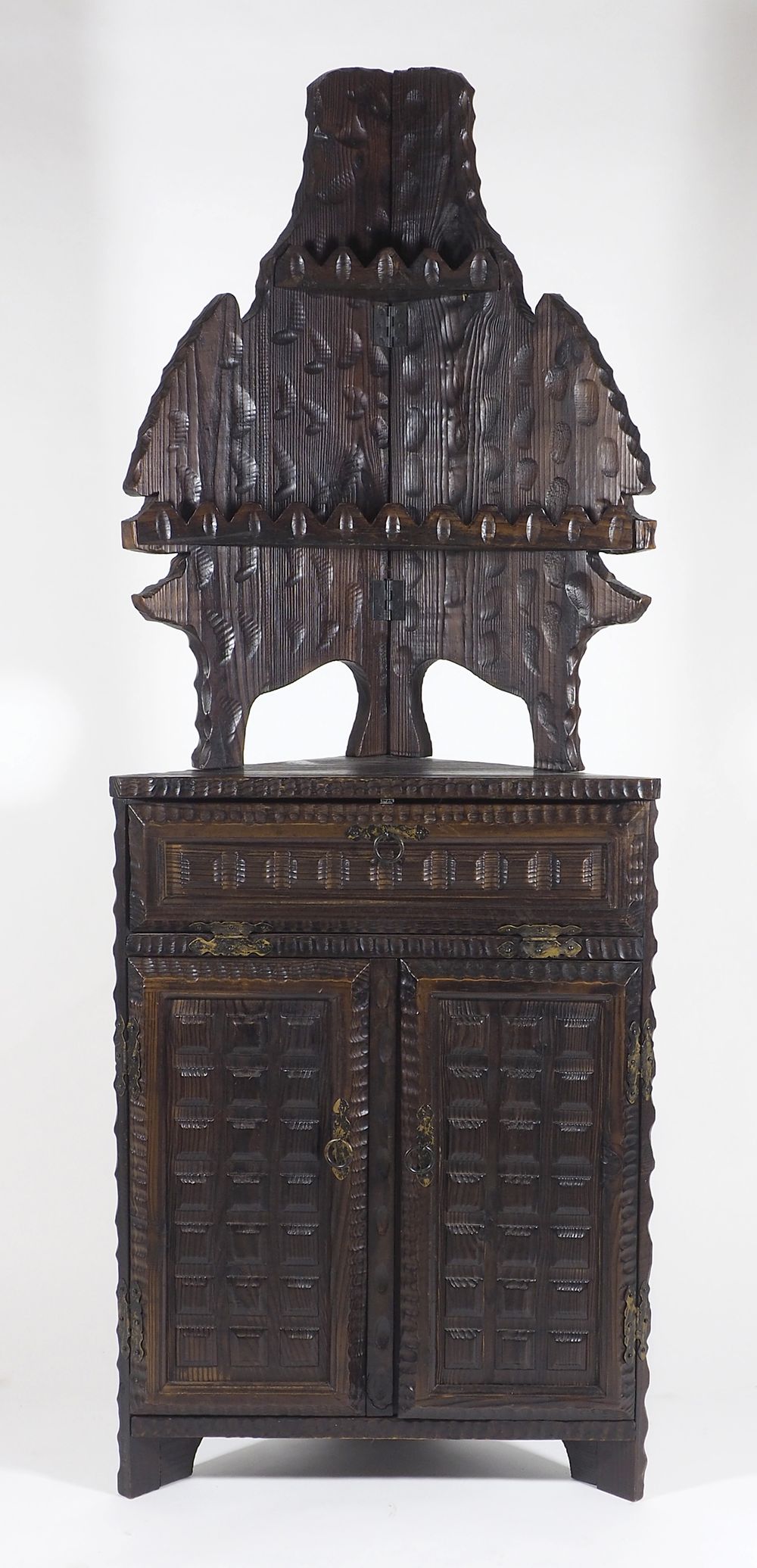 Angoliera "spagnola" a 2 ante e calatoia, parte superiore a ripiani.