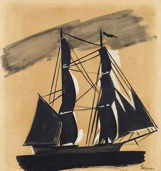 Mario Sironi (1885-1961) Veliero tempera su carta applicata su tela cm 30x28 Eseguito nel 1927 L'autenticità dell'opera è stata confermata verbalmente da F. Meloni, Legnano Provenance Collezione Giorgio Falck, Milano ivi acquisito dall'attuale proprietario