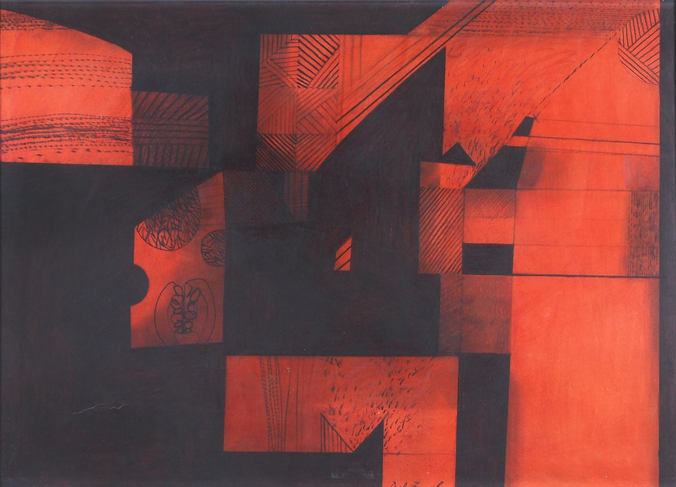 Pittore del '900 "Composizione" cm. 50x70 - matite colorate su carta su tela