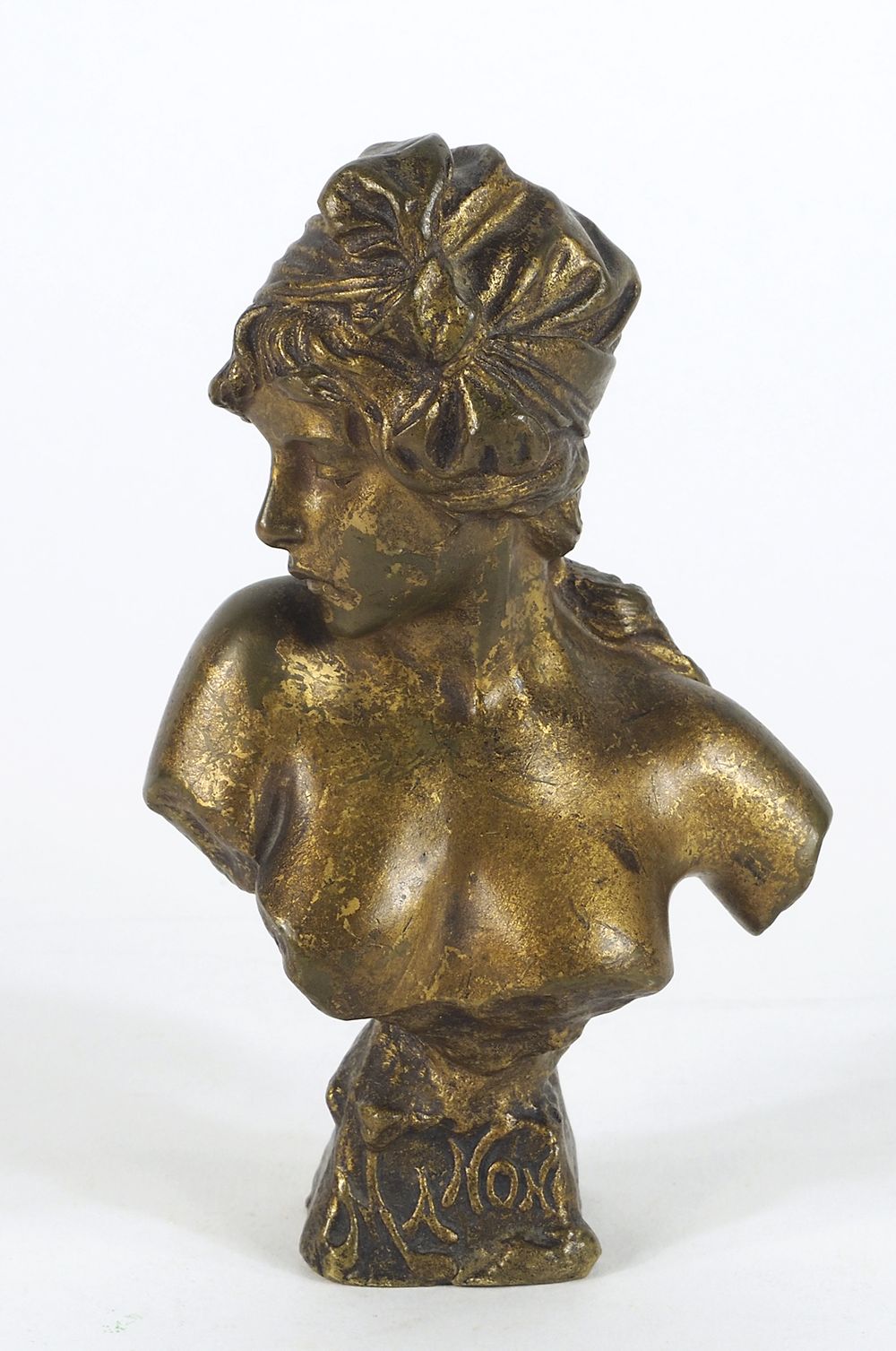 Statuina in bronzo dorato raffigurante busto femminile. H. cm. 16.