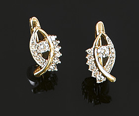 COPPIA DI ORECCHINI Coppia di orecchini in oro giallo, a monachella, con motivo ad intreccio, diamanti taglio brillante rotondo per complessivi ct 0,60 ca Peso gr. 3,8