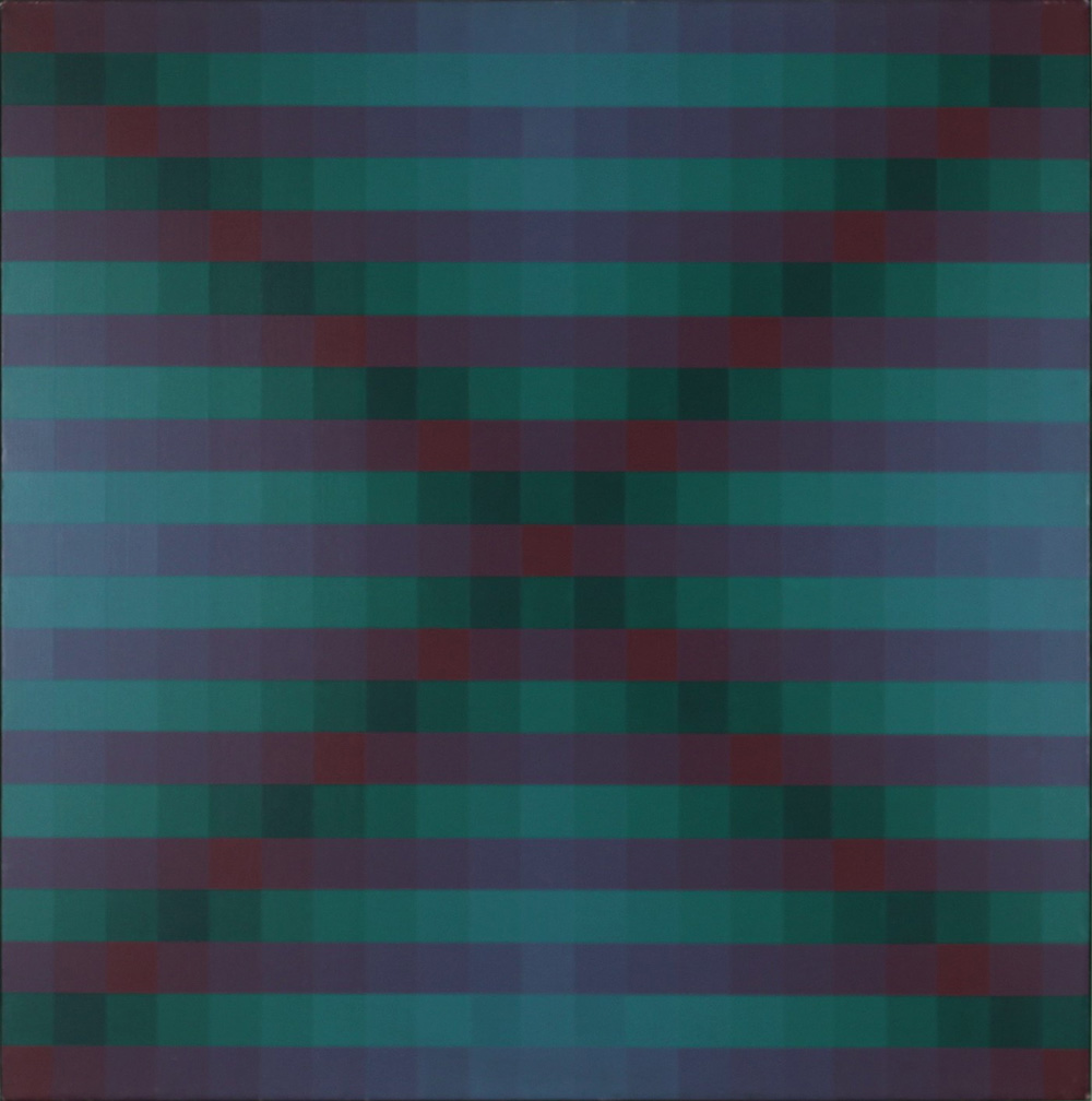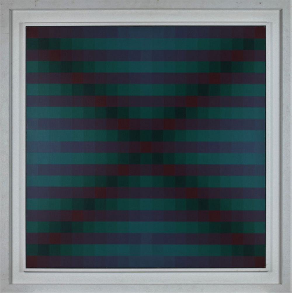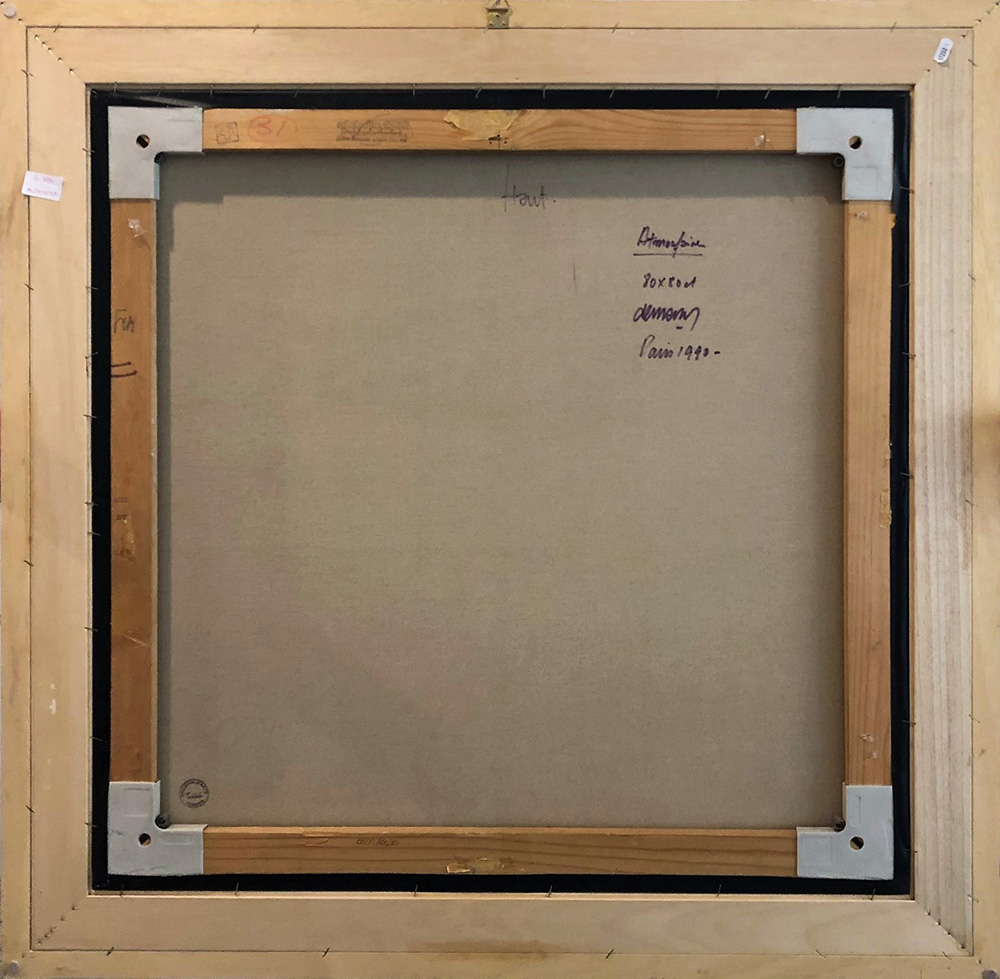 HUGO DEMARCO, Atmosfair, Acrilico su tela Anno 1990 Dim. 80x80 Autentica su foto dell’artista Opera pubblicata su catalogo Galleria d’Arte SEREGO "Quaderno n°1" a pagina 13 Al verso titolo, data e luogo, dimensioni e firma