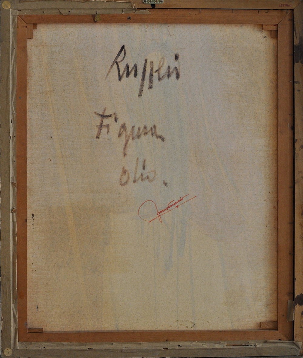 PIERO RUGGERI, Figura, Olio su tela Anni 70 Dim. 100x70 Al verso tecnica, titolo e firma Firmato in basso al centro