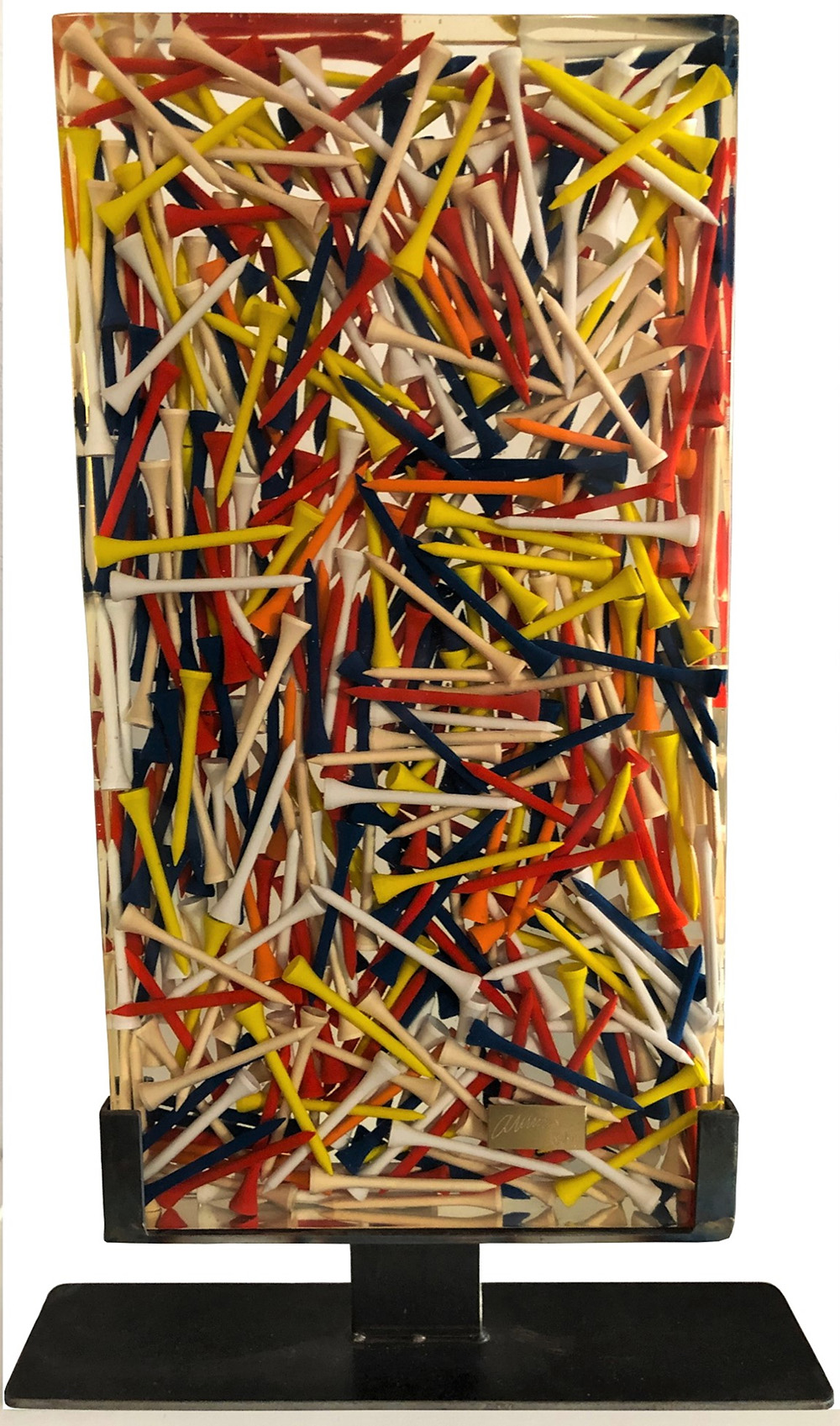 ARMAN FERNANDEZ, Golf tees, Inclusione nel plexiglass Anno 2003 Dim. 41x22x4 Esemplare 83/99 Firma e tiratura in basso a dx