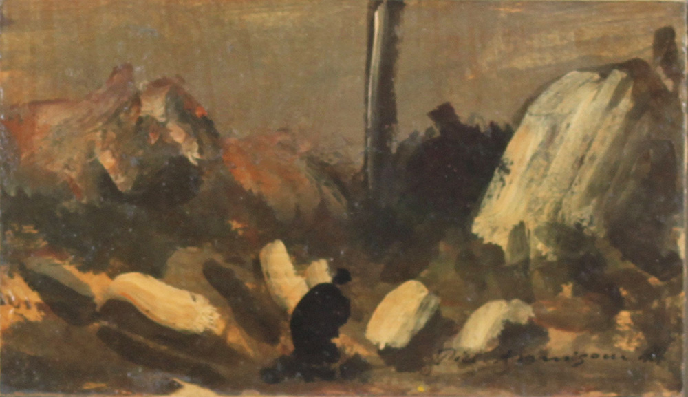 PIETRO ANNIGONI, Paesaggio, Olio su cartone Dim. 9x15 Autentica su foto dell'artista Firmato in basso a dx
