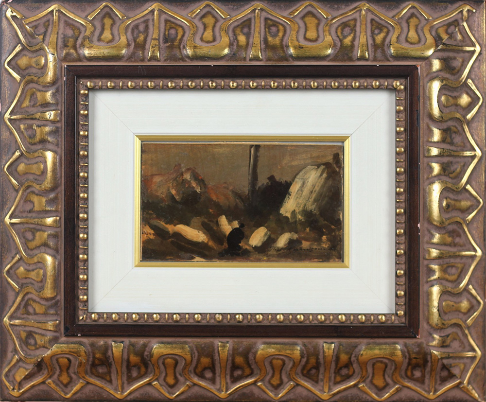 PIETRO ANNIGONI, Paesaggio, Olio su cartone Dim. 9x15 Autentica su foto...