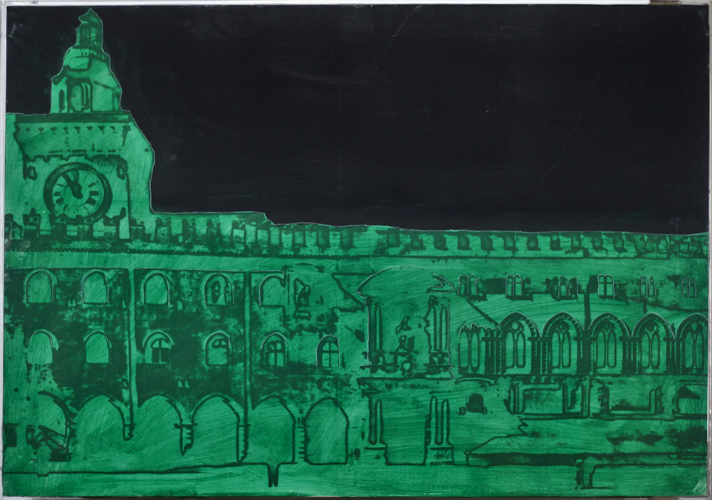 TANO FESTA, Da Michelangelo, Smalto su tela emulsionata Anno 1987 Dim. 70x100 Opera archiviata al N.87107/IP13 presso Archivio Tano Festa Al verso data e firma