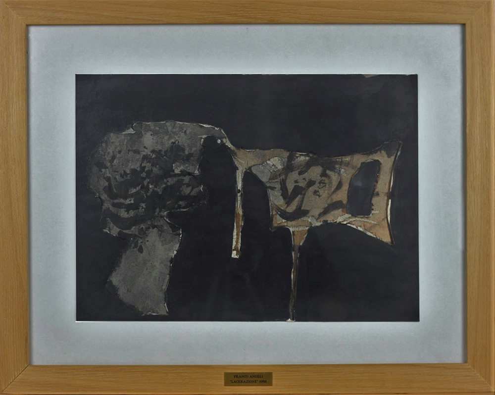 FRANCO ANGELI, Lacerazione, Tecnica mista e tulle su cartone Anno 1958 Dim....