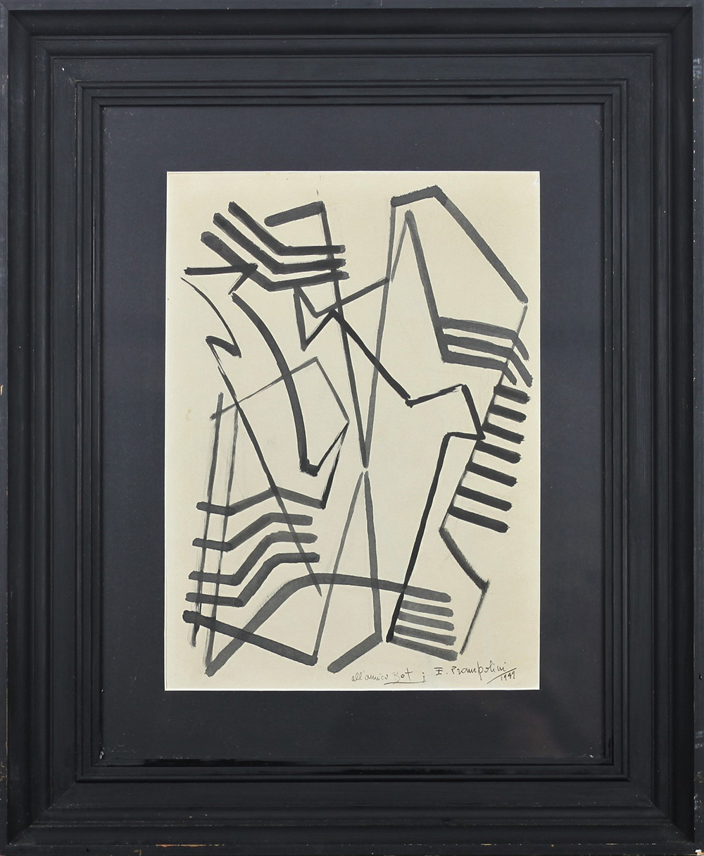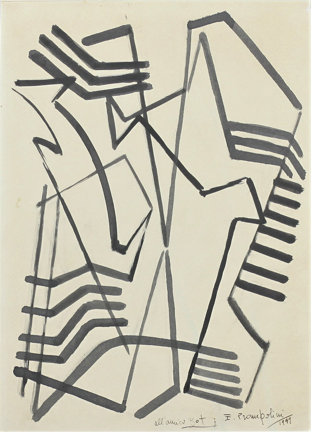 ENRICO PRAMPOLINI, Senza titolo, Tempera su carta Anno 1949 Dim. 33x23 Dedica, data e firma in basso a dx