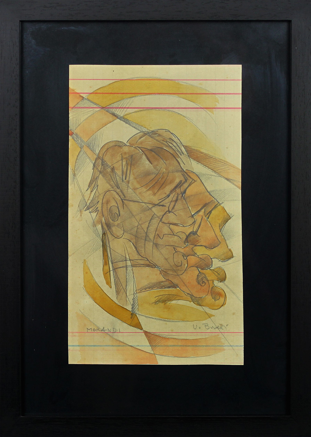UBERTO BONETTI, Caricatura di Morandi, Tecnica mista su carta Anni 50 Dim. 27x15,5 Opera archiviata presso l'Archivio Adriana Bonetti N.86Bis Firmato in basso a dx
