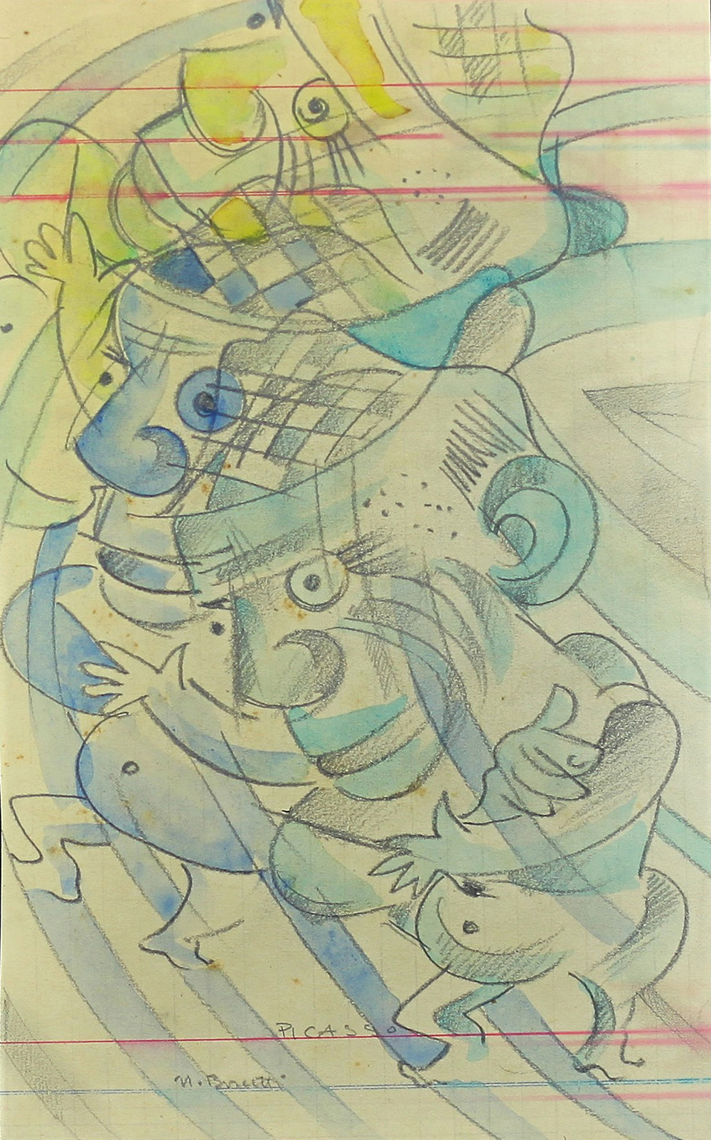 UBERTO BONETTI, Caricatura di pablo Picasso, Tecnica mista su carta Anni 50...