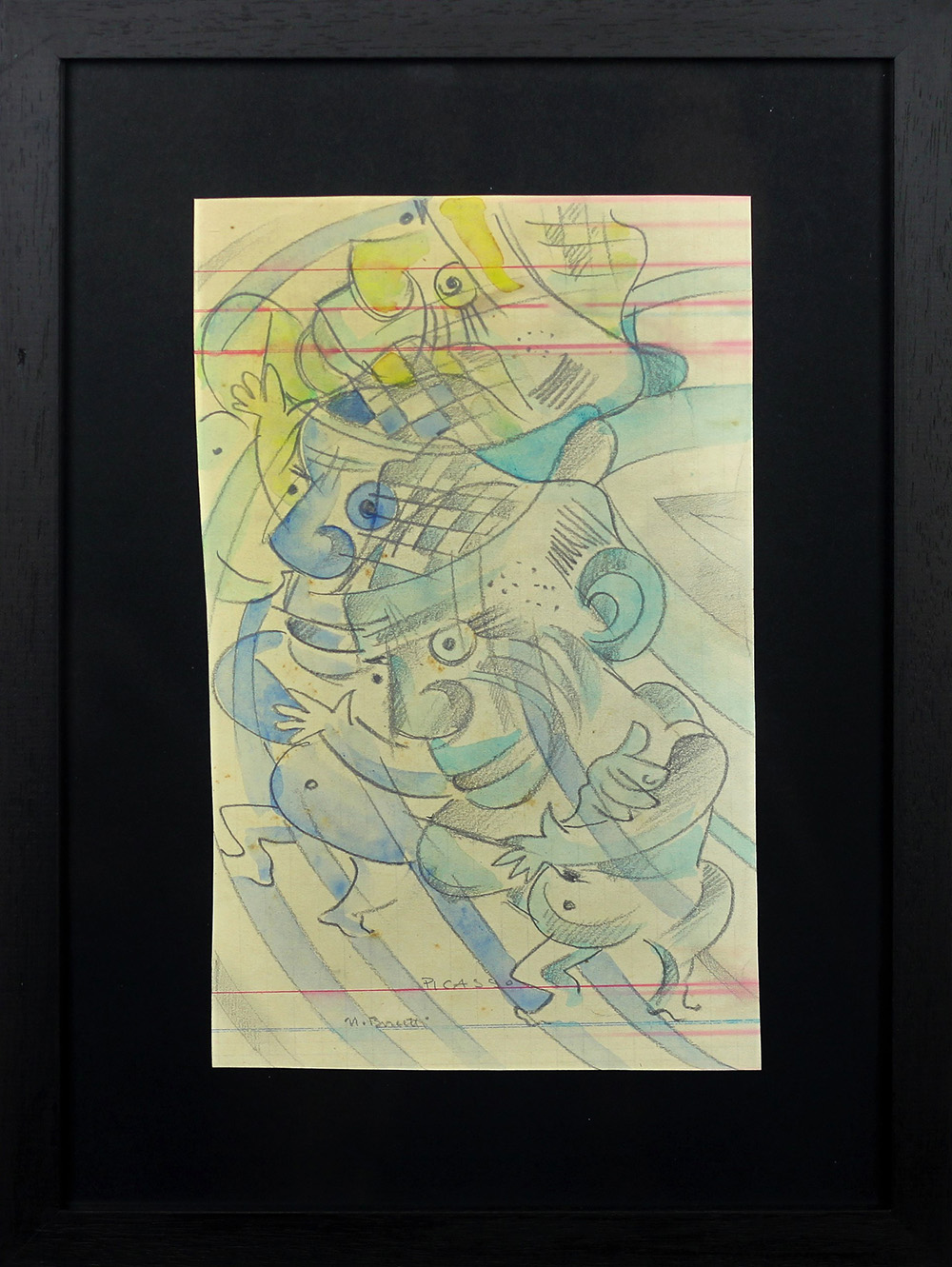 UBERTO BONETTI, Caricatura di pablo Picasso, Tecnica mista su carta Anni 50 Dim. 27,5x17,5 Opera archiviata presso l'Archivio Adriana Bonetti N.87Bis Firmato in basso a sx