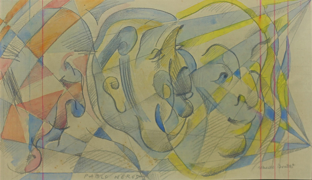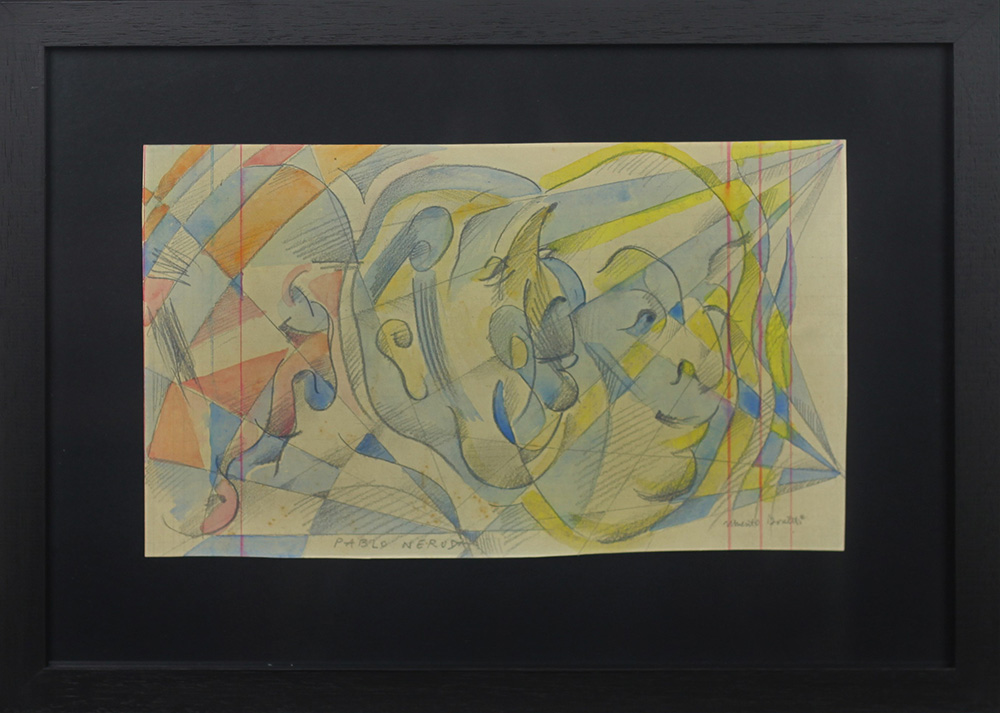 UBERTO BONETTI, Pablo Neruda - Caricatura, Tecnica mista su carta Anni 50 Dim. 17,3x29 Opera archiviata presso l'Archivio Adriana Bonetti N.85Bis Firmato in basso a dx