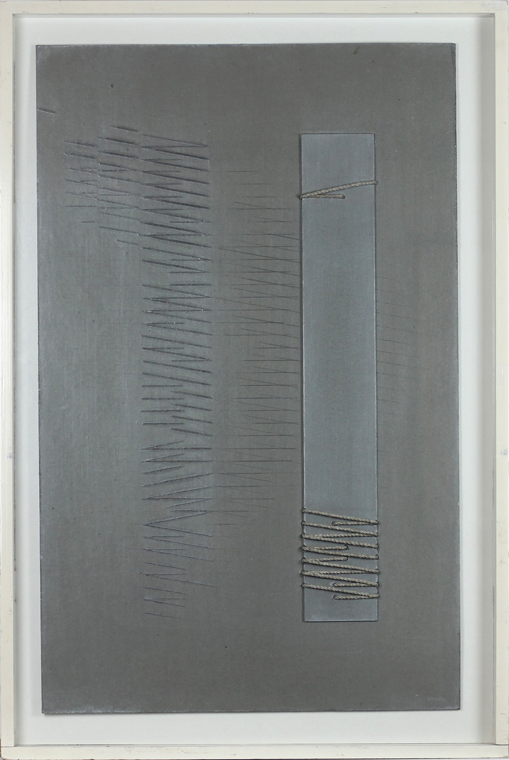 GIOVANNI CAMPUS, Senza titolo, Tecnica mista e applicazioni su tavola Dim. 80X50
