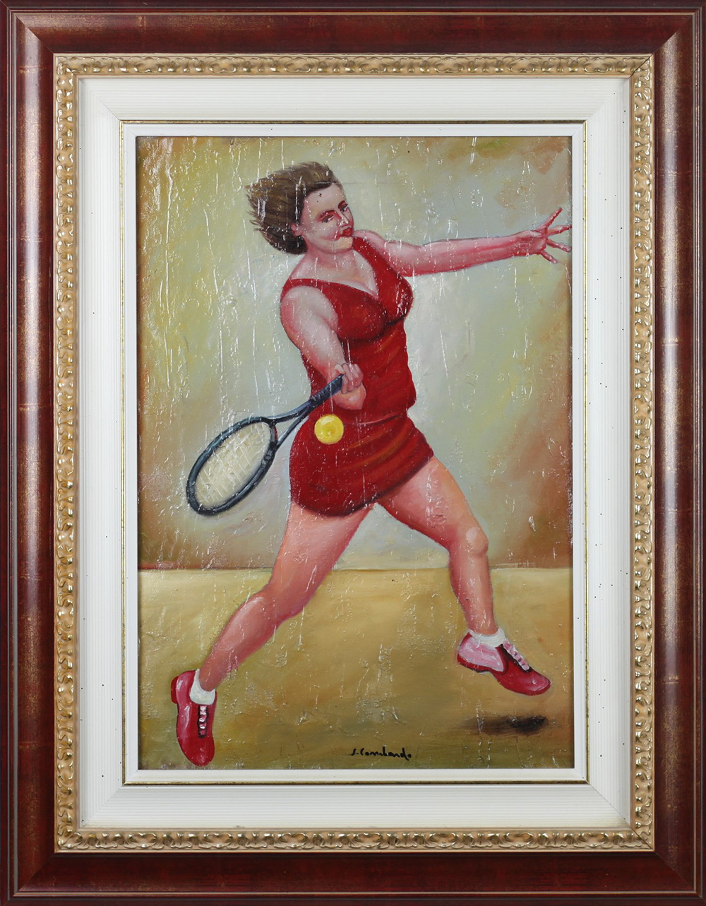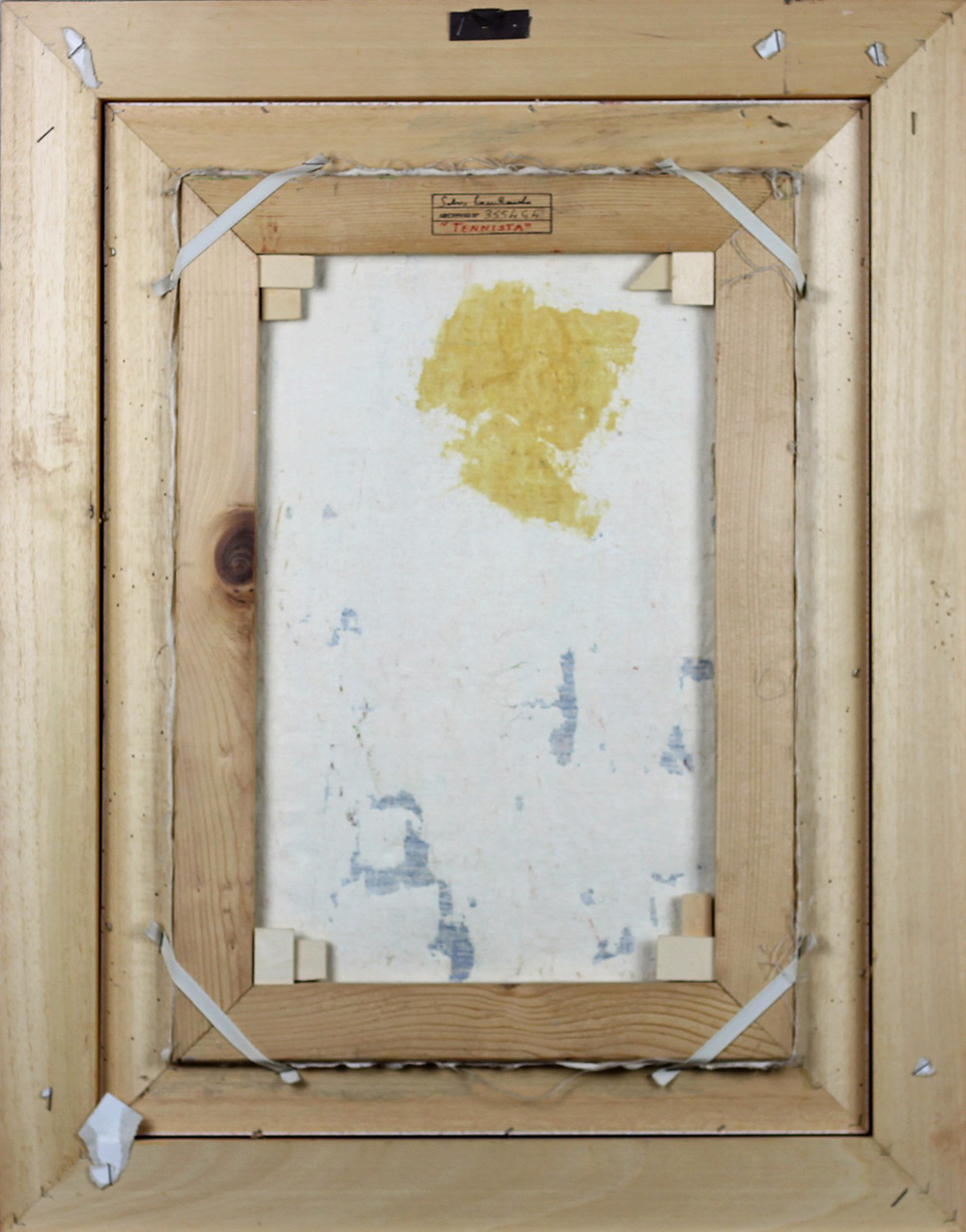 SALVO LOMBARDO, Tennista, Olio su tela Dim. 50x35 Opera Archiviata al N.3554G4 presso Archivio Salvo Lombardo Al verso titolo, firma e numero Archivio Firmato in basso al centro