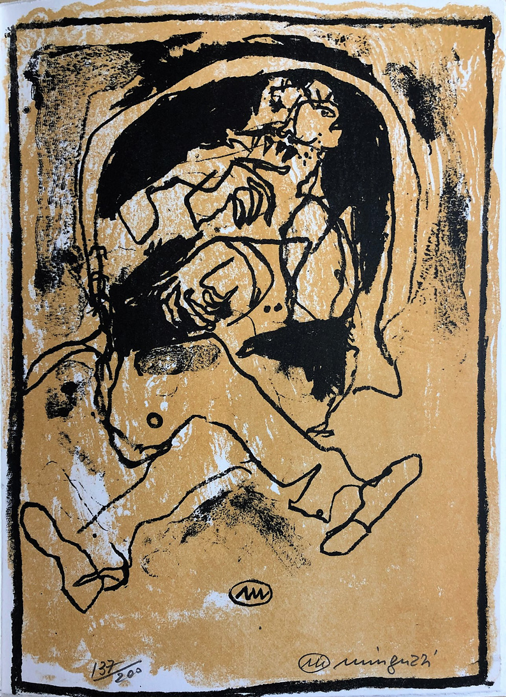 AUTORI VARI, Sei personaggi in cerca di autore, Libro contenente 5 di 6 opere grafiche Luciano Minguzzi - Bruno Caruso - Domenico Cantatore Giuseppe Migneco - Bruno Cassinari Dim cad. 30x22 0pera senza cornice Firmato in basso