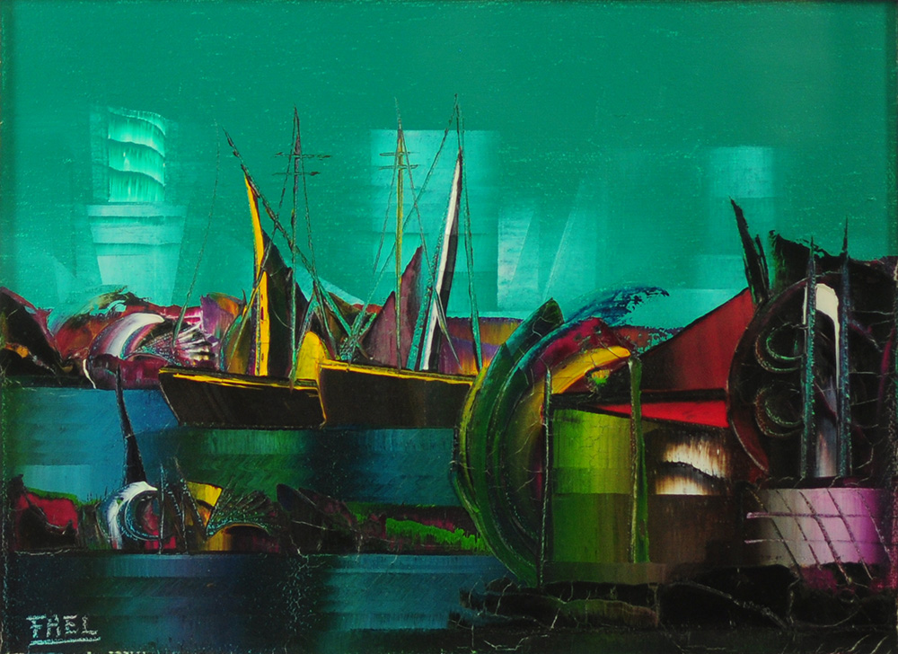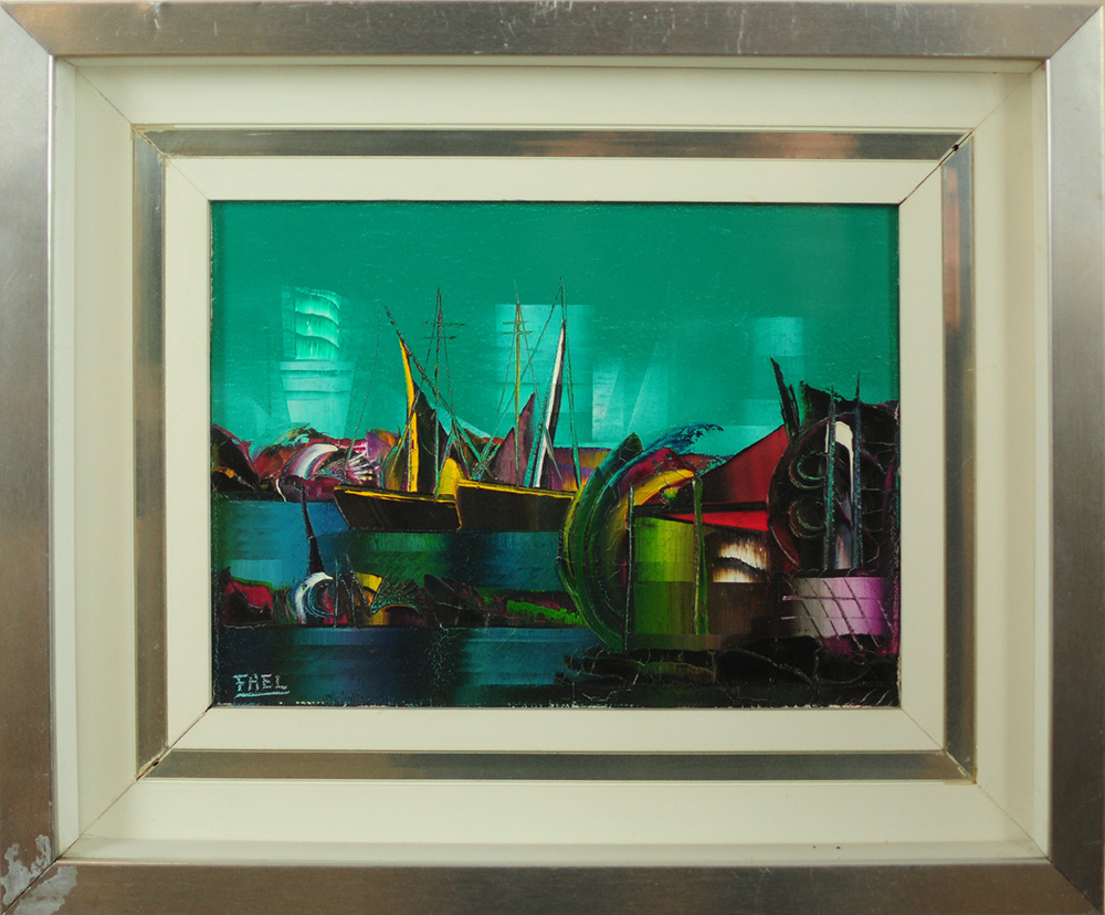 BRUNO FAEL, Barche, Olio su tela Dim. 18x24 Firmato in basso a sx